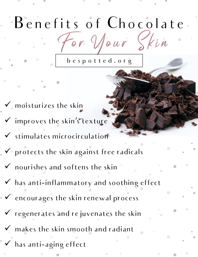 1. Reduce the risk of heart disease: A study suggested that eating 45 grams of chocolate per week lowers cardiovascular disease risk by 11%. However eating chocolate in excess did not help much with the risk of heart disease. So research shows that consuming dark chocolate in moderate quantity can show reduction in heart disease.